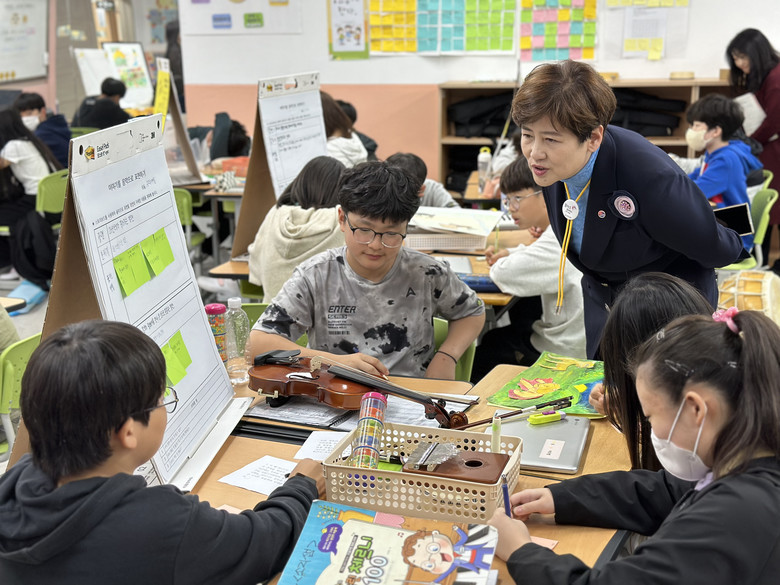 영어 수업에 참여한 6학년 박아솔 학생은 “스스로 질문을 던지고, 자료를 찾고 문제를 탐구해 나가는 과정과 내가 이해한 것을 친구들과 함께 성찰하고 공유하는 과정이 있어 평소 수업시간이 너무 알차고 즐겁다.”고 말했다.