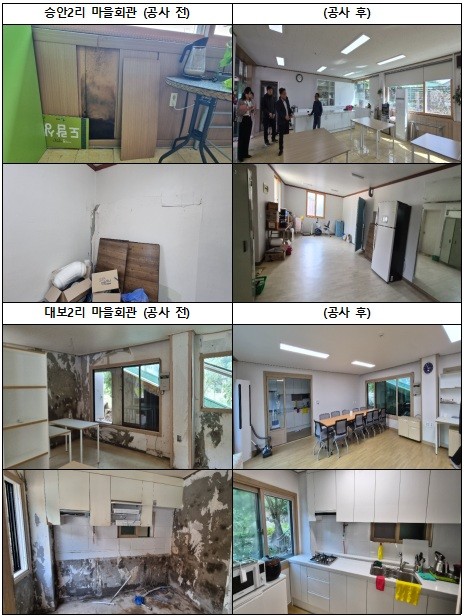 지난 9월에는 기금 5천만 원을 투입해 두 마을회관의 도배·전기 공사 등 내부 시설을 보수하고, 주민들이 사용하는 공동공간의 안전성과 편의성을 높이는 복구 작업을 진행했다.
