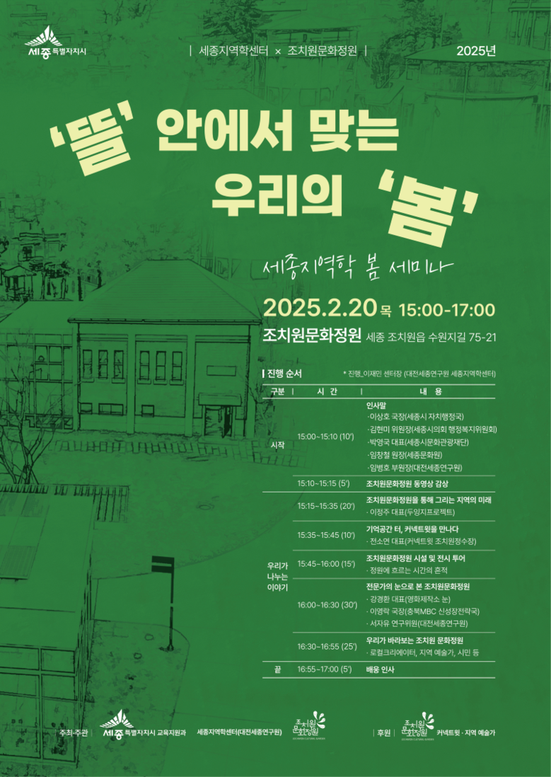 이재민 세종지역학센터장은 “이번 봄 세미나는 지역의 문화적 자산을 재조명하고 지역 발전을 위한 지속 가능한 방법을 찾는 중요한 기회가 될 것”이라며 “세미나를 통해 지역 주민들과 함께 문화의 미래를 그려보는 시간이 되기를 기대한다”고 말했다.