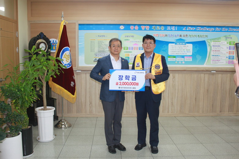 이에, 조석기 오창고등학교장은 “지역 발전과 명문고 육성을 위해 힘써주시는 청주청원라이온스클럽에 감사드리며, 오창고 역시 소중한 장학금을 전달받은 학생이 당당한 사회의 일원으로 성장할 수 있도록 힘쓰겠다.”라고 밝혔다.