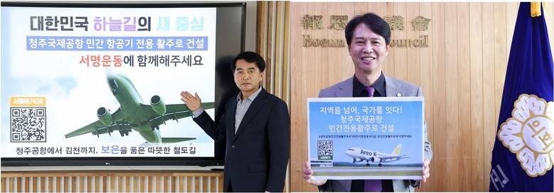 [충북 세계타임즈=이현진 기자] 충북 보은군이 청주공항 민간전용 활주로 건설을 촉구하는 100만 서명운동에 힘을 보탰다.