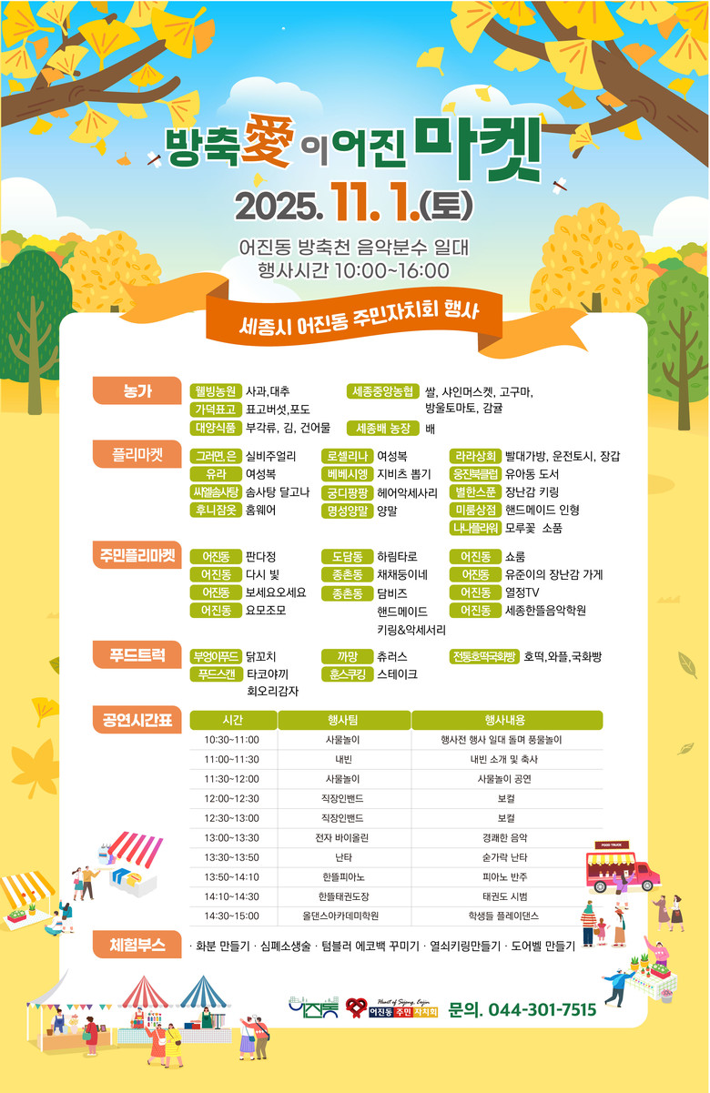 정성헌 주민자치회장은 “이어진마켓은 도시와 농촌, 현재와 미래를 잇기 위한 상생 프로젝트로 어진동의 대표 마을계획사업으로 자리잡아가고 있다”며 “해를 거듭할수록 더 많은 주민이 이어지고, 사업의 의미가 깊어지기를 희망한다”고 말했다.