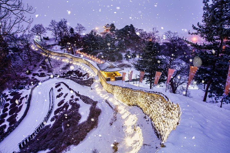 유네스코 세계유산으로 등재된 공주 공산성은 역사적 명소로 겨울밤 성곽길에서 바라보는 금강과 공주시내 야경이 여행에 특별한 여운을 준다.