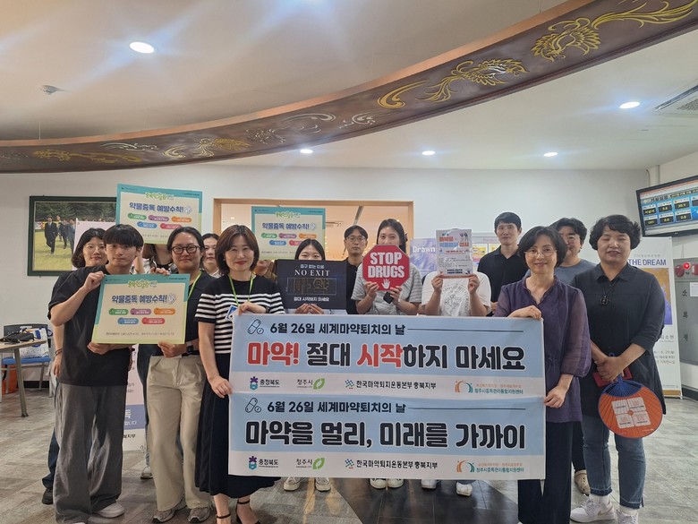 이번 캠페인은 마약의 위험성을 알리고, 마약 없는 안전한 사회 조성을 위해 마련됐으며, 충북도가 주관하고 청주시 4개 보건소, 한국마약퇴치운동본부 충북지부, 청주시중독관리통합지원센터, 충북대학교 B.B.서포터즈가 참여하였다.