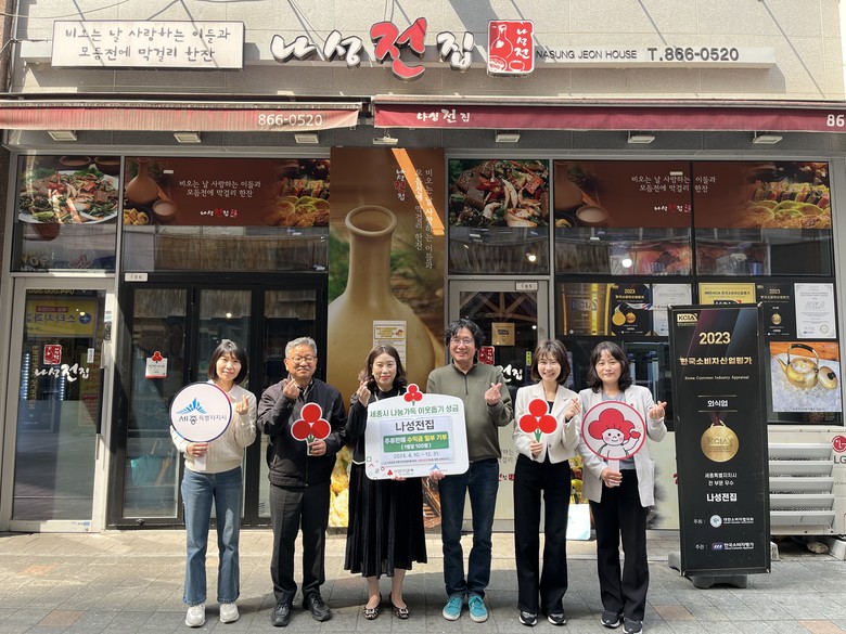 ‘나성전집’은 오는 12월 말까지 매장에서 판매되는 소주, 맥주, 막걸리 등 주류 1병당 100원을 적립해 세종사랑의열매를 거쳐 지역의 어려운 이웃들을 지원할 예정이다.