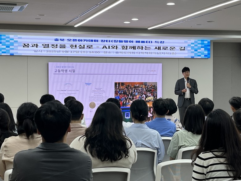이혜란 충북도 과학기술정책과장은 “이번 강연은 창의적 아이디어와 AI 기술을 접목해 지역사회와 행정이 나아가야 할 새로운 길을 모색하는 계기가 되었다”며, “도내 공직자와 청년들이 혁신적인 마인드를 공유하는 뜻깊은 시간이었다”고 밝혔다.