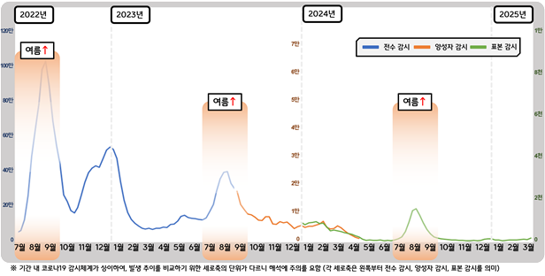 코로나19는 최근 3년간(’22~’24년) 겨울철뿐만 아니라 여름철에도 확진자 발생이 증가하는 양상을 보였으며, 코로나19 백신 접종 후 면역이 충분히 형성되는 기간(4주)을 고려하여 빠른 시일 내에 접종하는 것이 좋다.