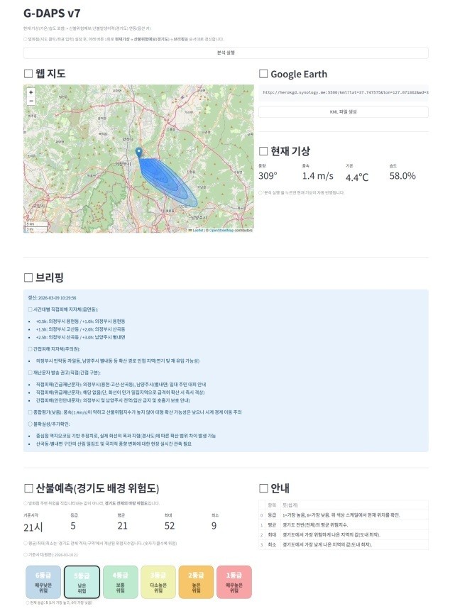 조광근 경기도 비상기획담당관은 “산불을 시작으로 홍수, 대설 등 대형 자연재난 발생은 물론 북한 오물 쓰레기 풍선 도발에 대한 대응에도 적용할 수 있도록 예측 모델 성능을 계속해서 개선할 예정”이라며 “경기도 AI국과 협의해 도내 31개 시군을 비롯한 다른 지자체에도 공유해 촘촘한 재난안전망 구축에 도움이 될 수 있도록 하겠다”고 말했다.