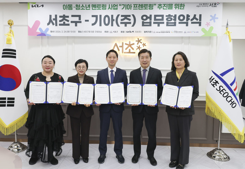[서초구 세계타임즈=이장성 기자] 서울 서초구(구청장 전성수)가 24일 기아㈜와 함께 저소득 아동·청소년의 교육 격차 해소와 건강한 성장을 지원하는 멘토링 사업 ‘기아 프렌토링’ 추진을 위한 업무협약을 체결했다고 밝혔다.