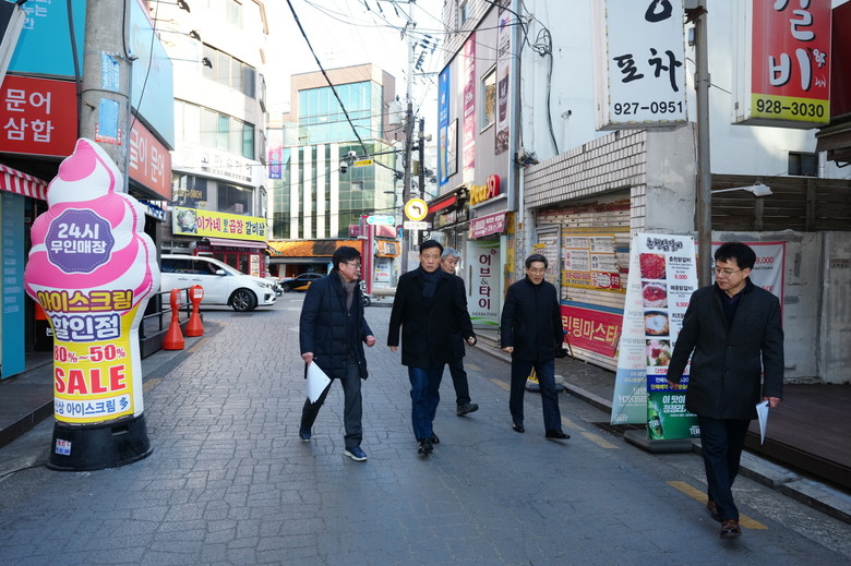 | ▲ 이승로 성북구청장(오른쪽 두 번째)이 고대 골목형 상점가로 지정된 안암역 일대를 점검하고 있다 |