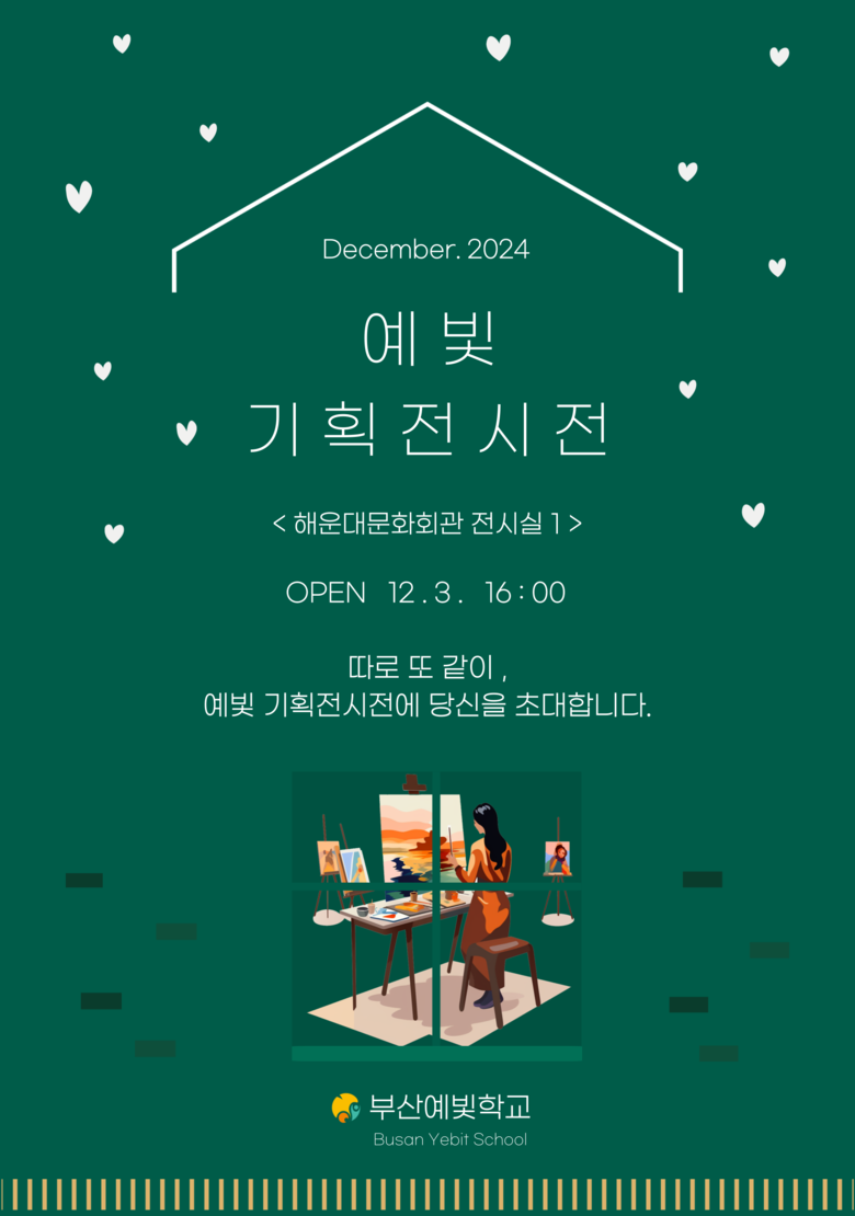 이정민 부산예빛학교장은 “이번 기획전시전은 실용미술 전공 학생들이 전문예술인으로서 더 넓은 세계로 나아가기 전 많은 이들의 축하와 격려를 받는 기회가 될 것이다”며 “시민들과 교육가족 여러분을의 많은 관심을 부탁드린다”고 말했다.