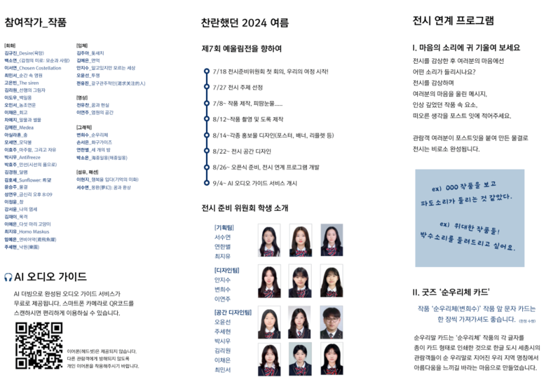 이번 미술과 제7회 예울림 전(展) 전시기획팀장 서수연(세종예술고 2학년) 학생은 “이번 전시를 준비하면서 우리 미술과 학생들은 각자 독창적인 표현 방식을 탐구하고, 서로 도우며 이번 전시회에 진심을 담아 준비했다.”라며,
