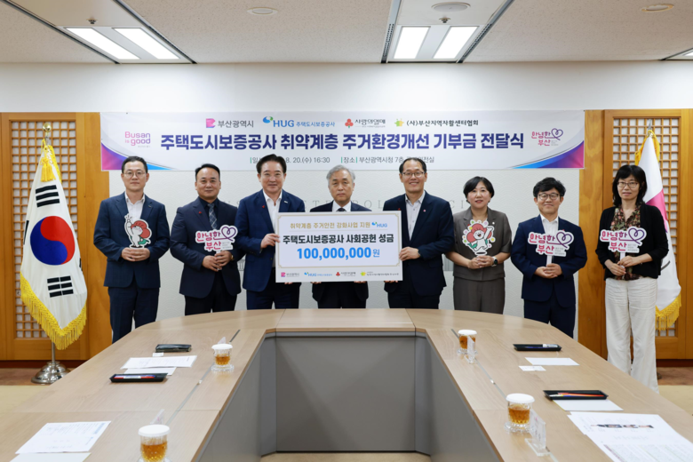 이준승 시 행정부시장은 “주택도시보증공사의 기부금은 취약계층이 안심하고 생활할 수 있는 기반을 조성하는 데 큰 도움이 될 것으로 기대한다”라며, “우리시는 부산이 시민 누구나 지역사회에서 건강하고 행복한 삶을 누리는 15분 돌봄 도시가 될 수 있도록 더 노력하겠다”라고 전했다.