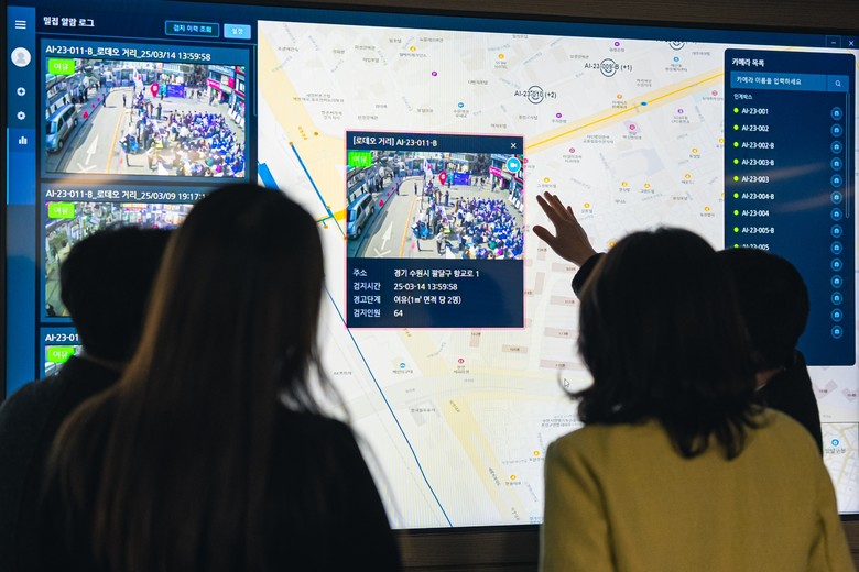 | ▲ 수원시가 유동인구가 많은 곳에 인공지능 카메라를 설치해 다중밀집지역 안전관리를 하고 있다. |