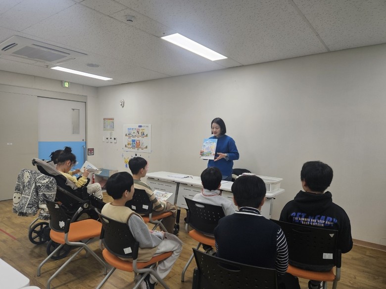 1~2월에는 호매실장애인종합복지관에서 장애 초등학생을 대상으로 ‘찾아가는 그림책 인지교실’을 운영한다. 1월에는 초등학생 겨울독서교실 ‘마음씨가 톡 튀어나왔어’를 열어 그림책을 통해 감정을 표현하는 활동을 한다.