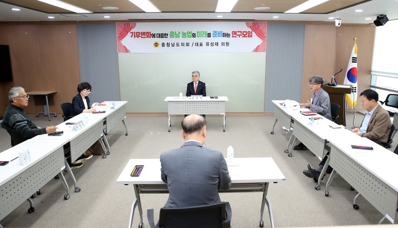 이번 회의는 연구모임 대표인 유성재 의원(천안5‧국민의힘)이 좌장을 맡았으며, 김성환 단국대 교수가 ‘기후변화에 대응한 충남 농업의 미래 준비 방안 연구’ 중간보고를 진행했다.