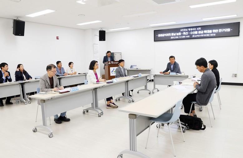 도의회 ‘공공급식처의 충남 농림‧축산‧수산물 공급 확대를 위한 연구모임(대표 김기서)’은 8일 아산시 먹거리재단 회의실에서 2차 회의를 개최했다.