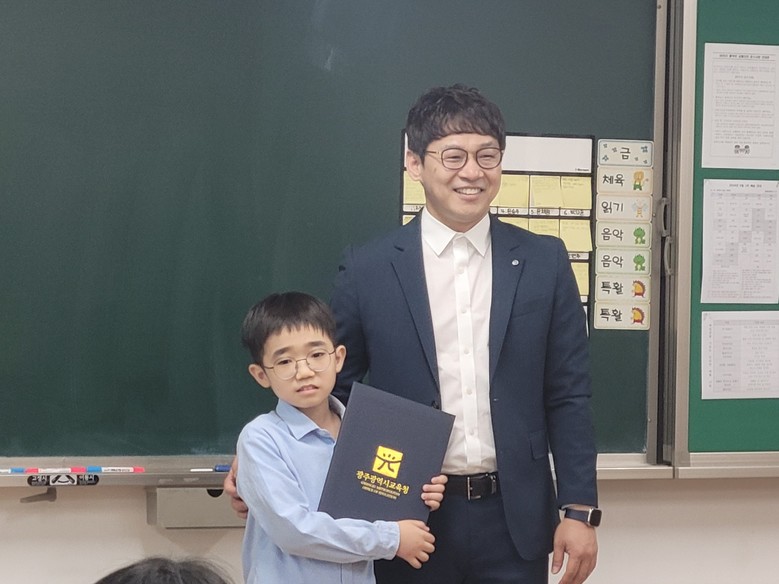 [광주 세계타임즈=손권일 기자] 광주효동초등학교가 3일 5학년 전하준 학생에게 광주광역시교육감이 수여하는 ‘자랑스런 광주학생’ 표창을 전달했다고 밝혔다.