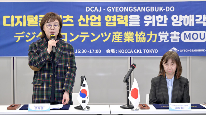 [경북 세계타임즈=한윤석 기자] 경상북도는 30일(금) 오후, 일본 도쿄 한국콘텐츠진흥원(KOCCA) 일본비즈니스센터에서 일본 디지털콘텐츠협회(이하 DCAJ)와 ‘디지털 콘텐츠 신산업 분야 국제 협력 강화를 위한 업무협약(MOU)’을 체결했다고 밝혔다.