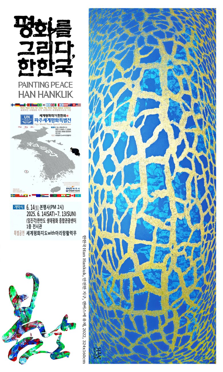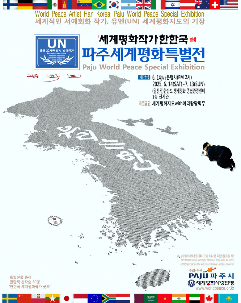 이번 전시는 파주시가 평화공존과 화합에 대한 시민 공감대 확산을 위한 ‘2025년도 남북교류협력기금 지원사업’ 공모에 최종 선정된 전시행사이며, 한한국 세계평화작가의 한글서예회화, 현대미술, 디지털그래픽아트, 도자기 등이 전시 된다.