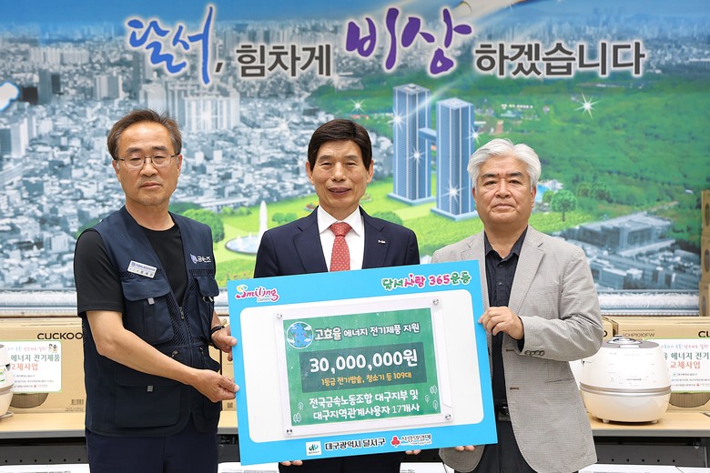 이태훈 달서구청장은 “생활 속 탄소제로 실천은 기후위기 대응을 위한 가장 효과적인 방법”이라며 “후원해주신 금속노조 대구지부와 관계 사용자들께 깊이 감사드리며, 앞으로도 일상 속 탄소중립 실천을 지속적으로 확대해 모두가 행복한 지속가능 도시 달서를 만들어 가겠다”고 밝혔다.