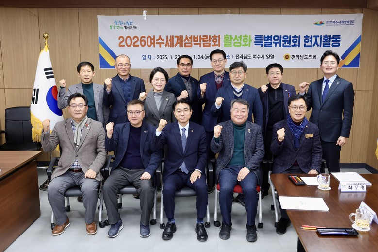 [전남 세계타임즈=우덕현 기자] 전라남도의회 「2026여수세계섬박람회 활성화 특별위원회」(위원장 최무경)는 지난 1월 23일 2026여수세계섬박람회 조직위원회와 여수 돌산 진모지구를 방문하여 내년으로 다가온 2026여수세계섬박람회 진행상황을 점검하는 간담회를 가졌다.