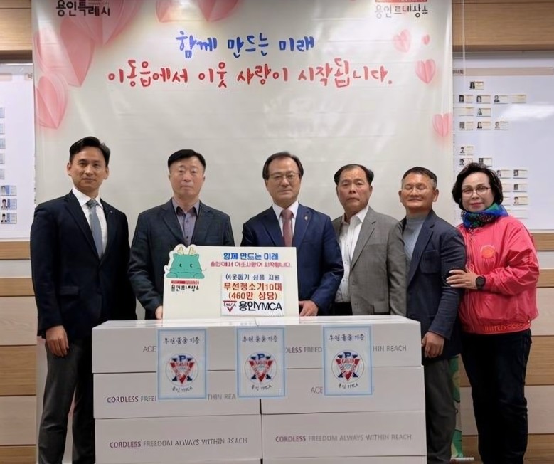 용인YMCA(이사장 김명돌)는 지난 24일 이동읍 행정복지센터에 총 460만 원 상당의 무선 청소기 10대를 기탁했다. 이번 후원은 지난 연말 ‘후원의 밤’에서 에이스전자㈜(대표 주영종)가 물품 기탁 의사를 밝힌 데 따른 것이다. 무선 청소기는 이동읍 행정복지센터를 통해 취약계층에 전달될 예정이다. 김 이사장은 “앞으로도 다양한 지역사회 활동을 통해 도움이 필요한 이웃과 지속적으로 함께 하겠다”고 했다.
