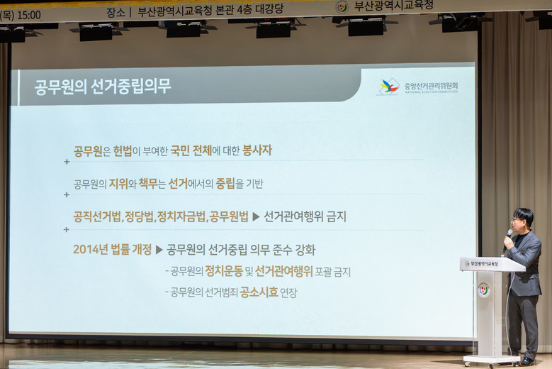 부산시교육청 관계자는 “공무원의 정치적 중립은 공정한 행정의 기본”이라며, “앞으로도 지속적인 교육을 통해 신뢰받는 공직사회 구현에 힘쓰겠다”고 밝혔다.