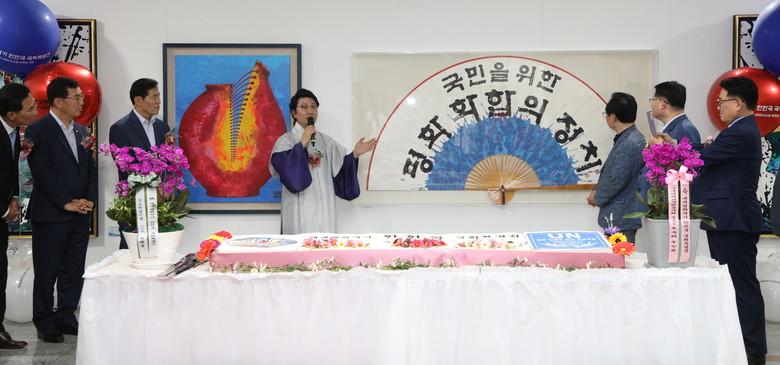 축사 자를 비롯해 유준상 국민의 힘 상임고문, 조재환 전 국회의원, 김길수 시사매거진 회장, 국민가수 최진희 가수, 장성철 세계평화지도국회특별전위원장 등 전국 각계각층 200여 명이 참석한 가운데 한한국 세계평화작가가 '봉합', '통합 바람의 부채' 국민 제막식을 열어 큰 관심을 받았다.