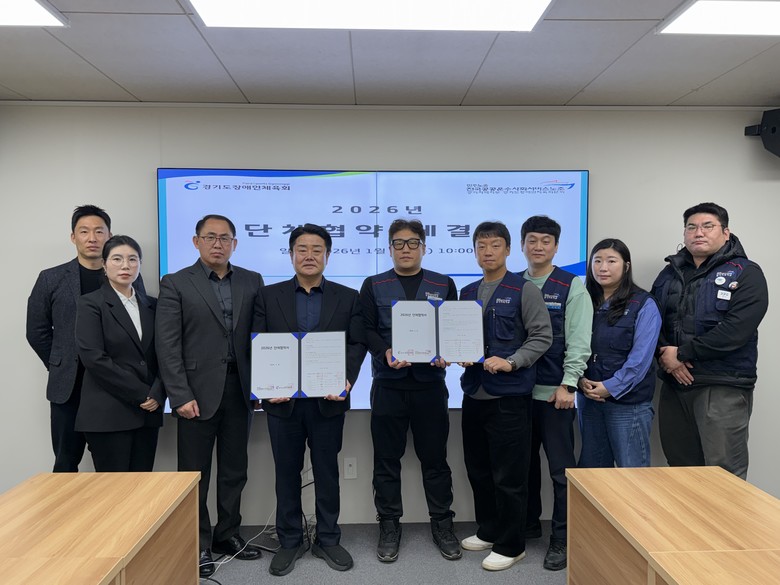 | ▲2026년 경기도장애인체육회 단체협약 체결식.(사진=경기도장애인체육회) |