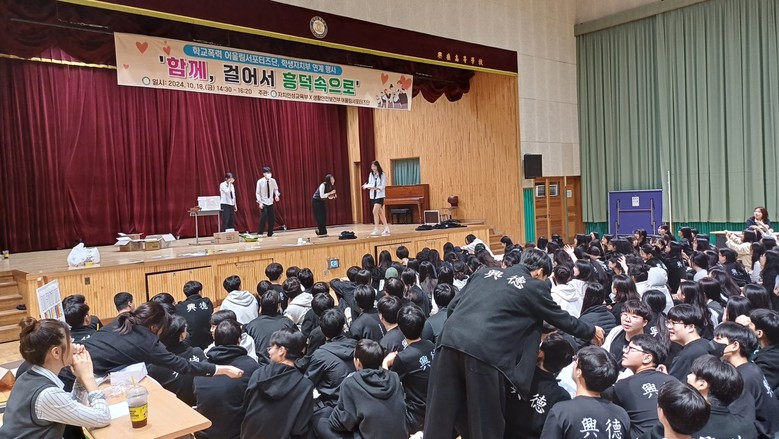 [충북 세계타임즈=이현진 기자] 흥덕고등학교(교장 최동일)은 18일(금), 학생 자치회와 연계 행사 <함께, 걸어서 흥덕속으로>를 실시하였다.
