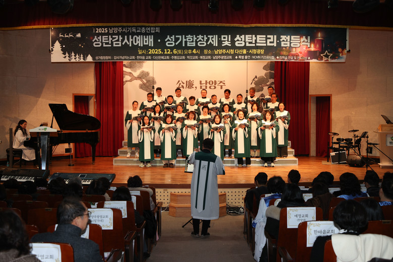 [남양주시 세계타임즈=송민수 기자] 남양주시(시장 주광덕)는 지난 6일 시청 앞 광장에서 지역 교회와 시민이 함께한 ‘2025 성가합창제 및 성탄트리 점등식'을 성황리에 마쳤다고 밝혔다.