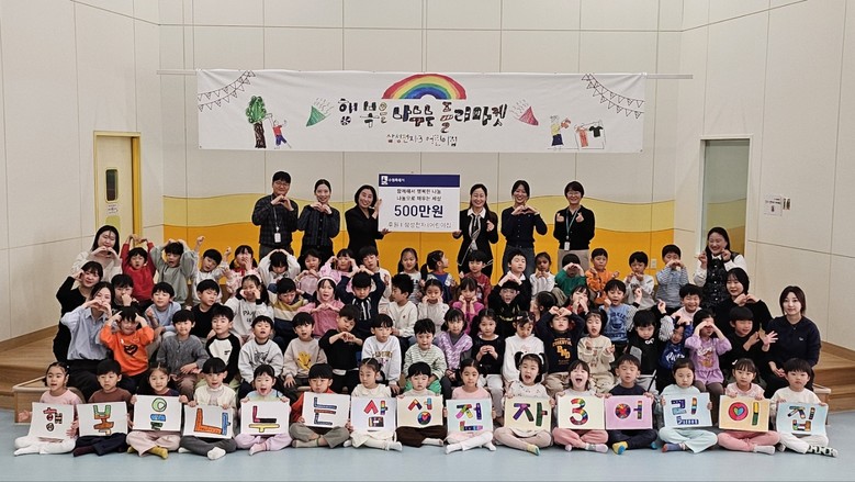 이번 기부금은 지난 10월 17일 열린 ‘행복을 나누는 플리마켓’ 수익금이다. 재원 아동 250가정이 문구·서적·장난감 등을 기부해 플리마켓에 참여했고, 어린이집은 과자 가게·문구점·장난감 가게 등 장터 부스를 운영했다.