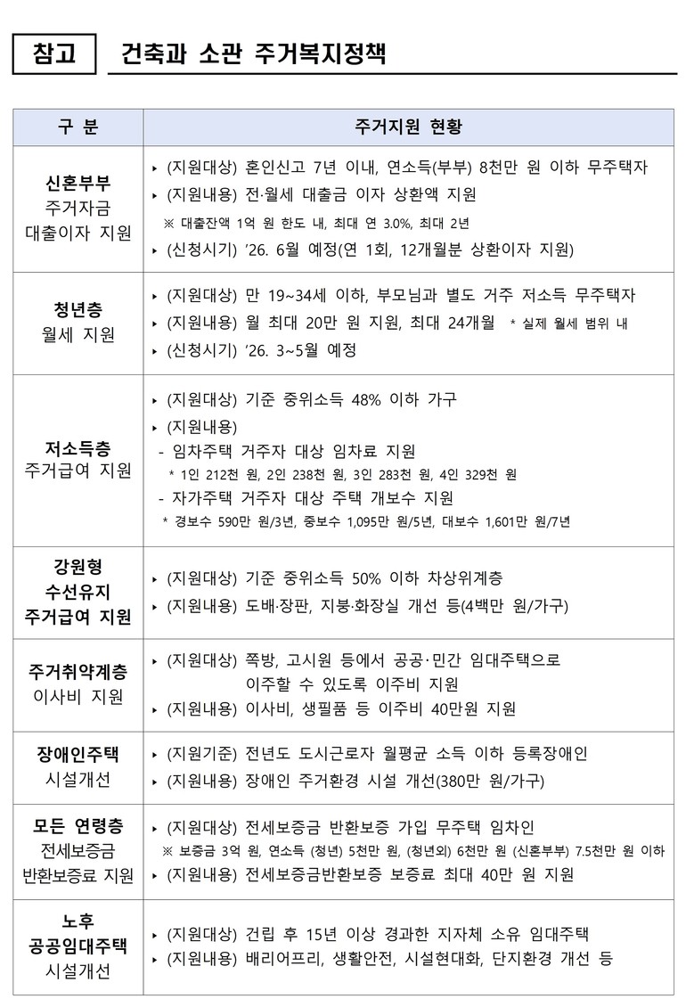 - 2026년 주거복지 예산 1,081억 원 편성 (국비 893억 원 확보)