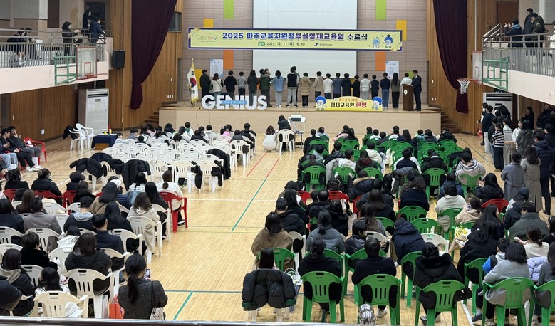 [파주시 세계타임즈=송민수 기자] 경기도파주교육지원청(교육장 전선아) 부설영재교육원은 12월 11일(목) 금촌초등학교 체육관에서 2025학년도 경기도파주교육지원청 부설영재교육원 수료식을 개최했다. 이번 수료식에는 1년간의 교육과정을 성실히 이수한 초등학교 3학년부터 중학교 2학년까지 총 90명의 학생과 학부모, 지도교사 등 총 200여명이 함께 참여했다.