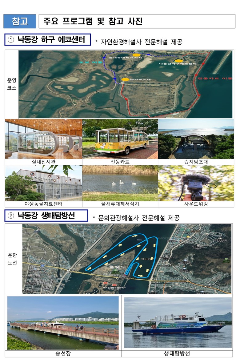 특히, 프로그램은 시민과 관광객이 낙동강 하구의 소중한 생태 가치뿐만 아니라 환경보전의 중요성을 자연스럽게 인식할 수 있도록 해설과 체험을 결합해 진행된다. 또한, 기존 관광코스에서 잘 알려지지 않았던 서부산의 새로운 매력을 발견할 수 있도록 구성된다.