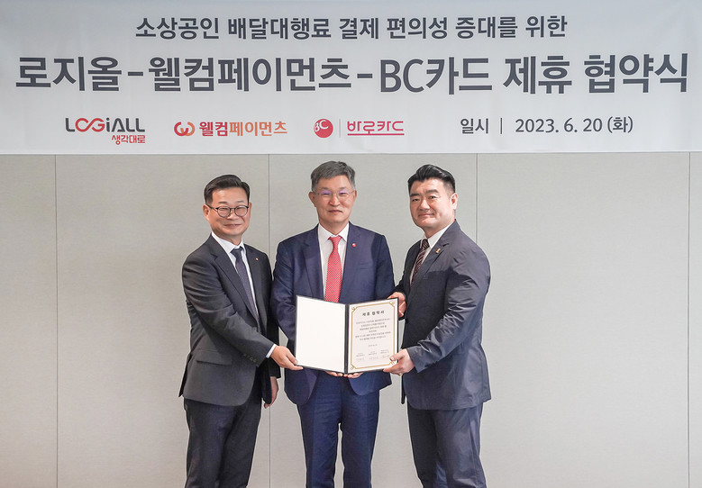 BC카드(대표이사 사장 최원석)가 배달대행플랫폼운영사 ‘로지올(생각대로)’과 전자지급결제대행(PG)사 ‘웰컴페이먼츠’와 배달대행료 결제서비스 제휴 관련 업무협약을 체결했다고 21일 밝혔다.
