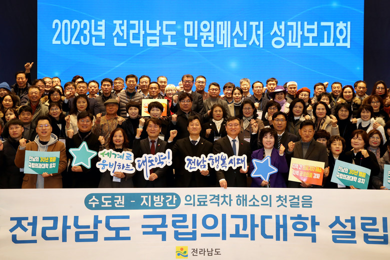 우수 민원메신저 활동 사례를 발굴하고 유공자들을 격려하고자 열린 이날 성과보고회는 명창환 전남도 행정부지사를 비롯해 민원메신저 표창 대상자 등 200여 명이 참석한 가운데 2023년 성과보고와, 유공자 표창, 기념촬영이 진행됐다.