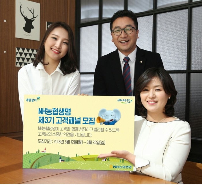 [세계타임즈 이채봉 기자] NH농협생명(대표이사 서기봉)이 고객 의견을 더욱 적극적으로 수용하기 위해 제3기 고객패널을 모집한다. 모집기간은 3월 12일(월)부터 25일(일)까지 농협생명 홈페이지에서 지원서를 다운받아 이메일을 통해 접수 가능하다.