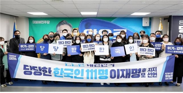 이재명 후보 지지를 선언한 다문화 가족 및 다문화 가정 2세 청년들인 ‘당당한 한국인’ 111명은 “성남시장 시절 다문화사회 진입에 따른 장기적인 계획을 마련해야 한다며 다문화 가정의 입국 준비부터 자녀 학교생활까지 밀착 지원하겠다던 이재명 후보의 말을 기억한다”라며, “이제는 그 말을 지키기 위해 대통령 후보로 나선 이재명 후보에게 당당한 한국인으로서 힘을 모으고자 한다”라고 밝혔다.