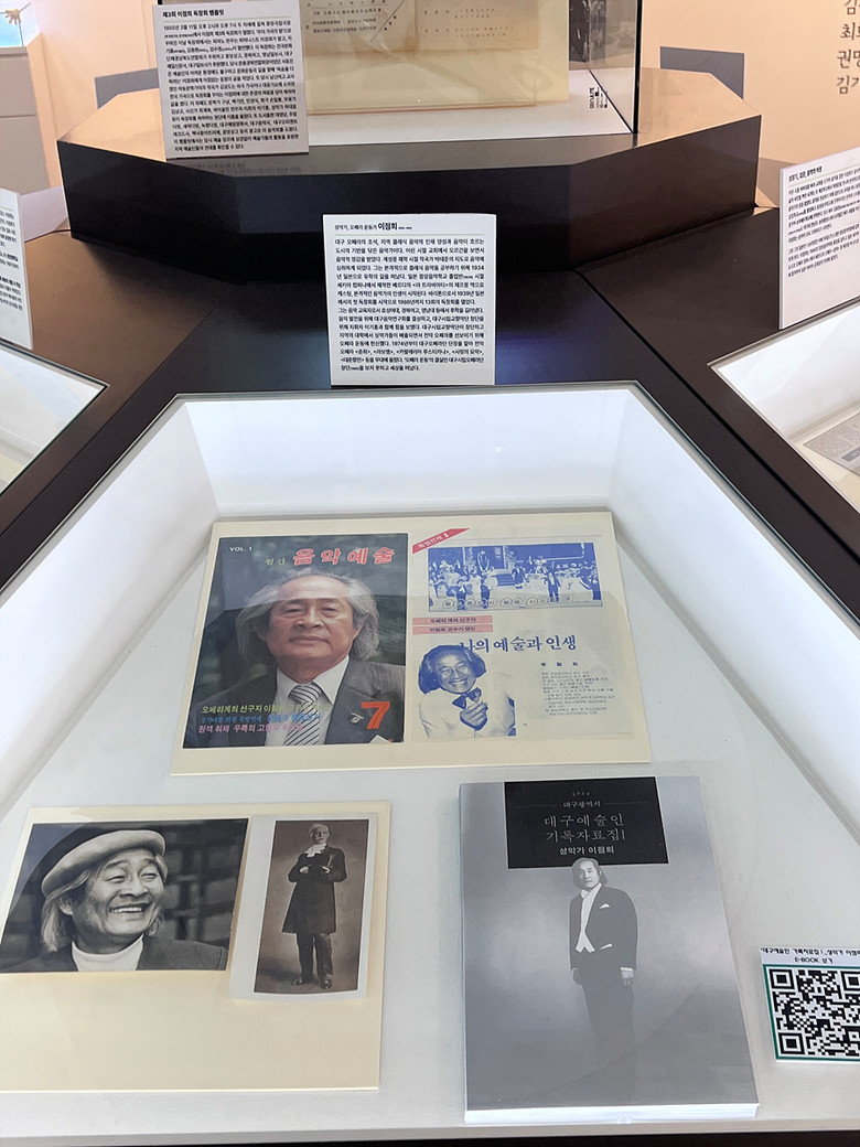 아울러 대구음악연구회·대구음악협회 결성, 교향악 운동 등 대구 음악사의 주요 전환점마다 이점희의 이름이 함께했음을 확인할 수 있는 자료와 어려운 여건 속에서도 오페라 무대를 올리기 위해 헌신했던 그의 노력이 담긴 당시 신문 기사도 전시된다. 그가 남긴 인터뷰 속 “대구 오페라계를 가꾸는 것이 나의 신앙”이라는 말은 오늘날까지도 깊은 울림을 전한다.