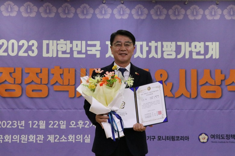 여의도정책연구원이 주관한 ‘지방자치평가 의정정책대상’은 전국의 기초·광역의원을 대상으로 지방자치 활성화를 위해 주민 삶의 질 향상, 경쟁력 있는 지역발전 시책 개발, 지역 활동 등에 기여한 우수의원을 선정해 시상하는 상이다.