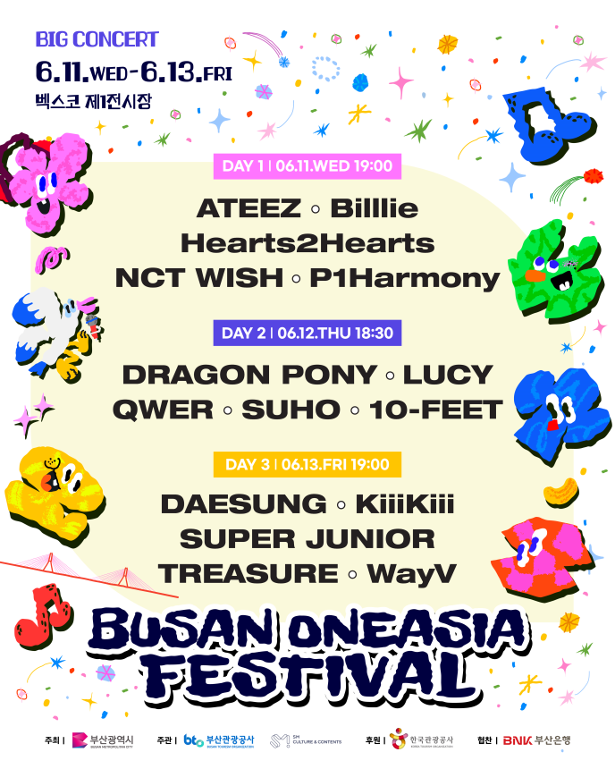 메인행사인 ‘2025 부산원아시아페스티벌(BOF)’의 빅앤밴드(Big&Band) 콘서트는 6월 11일부터 13일까지 벡스코 제1전시장에서 개최되며, 공식티켓 예매는 멜론티켓(ticket.melon.com)에서 진행되고 있다.