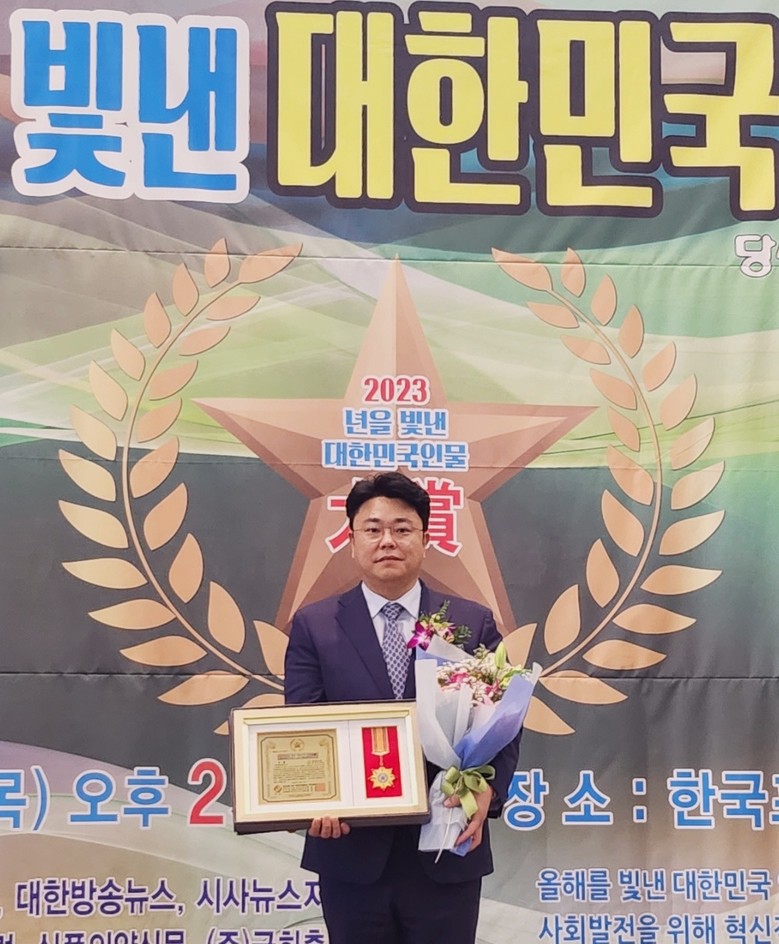 ‘2023년을 빛낸 대한민국 인물대상’은 국가와 사회발전을 위해 정치, 지방의회, 지역사회공헌 등 각 분야에서 평소 투철한 사명감과 확고한 국가관으로 창조적인 글로벌 리더쉽을 갖춘 인물에게 시상하고 있으며, 데일리뉴스, (사)한국SNS신문방송인클럽, ㈜국회출입기자클럽연합회가 주관하고 있다.