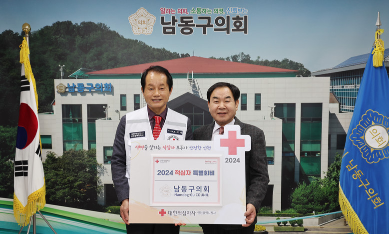 [남동구 세계타임즈=심하린 기자] 남동구의회(의장 오용환)는 지난 24일 의장실에서 대한적십자사 인천지사에 2024년 적십자 특별회비 50만원을 전달했다.