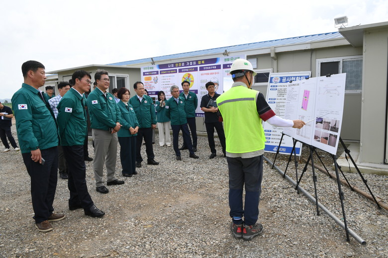 그리고, 곧바로 인근 무인항공 영농기술 특화농공단지 사업현장을 방문해 사업 진척상황을 살피고 관계자들을 격려하며 차질 없는 공사 추진을 당부했다.