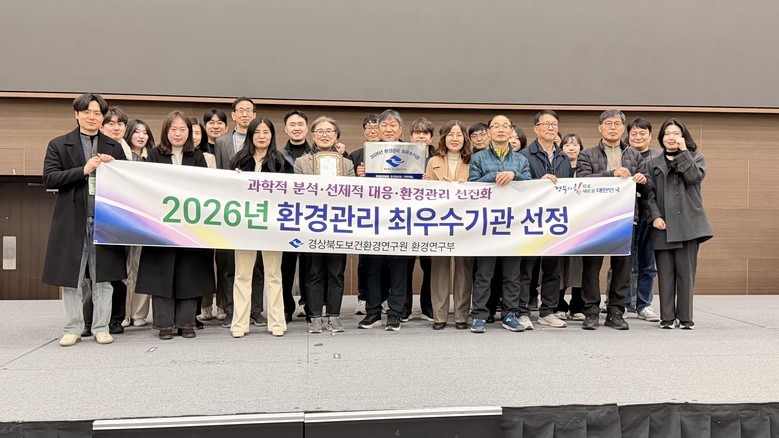 [경북 세계타임즈=한윤석 기자] 경북보건환경연구원이 5일 경주 HICO(하이코)에서 개최된 ‘제44회 2026년 상반기 물종합기술연찬회’에서 2026년 환경 관리 최우수기관으로 선정됐다.