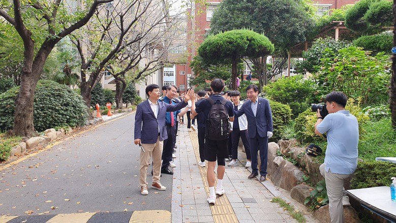 이번 행사에는 김영욱 부산진구청장, 도원칠 부산진경찰서장을 비롯한 경찰, 구청 공무원과 학부모들이 함께 학생들을 맞았다. 이들은 학생들에게 응원메시지를 전달하고 응원 간식을 제공했다.