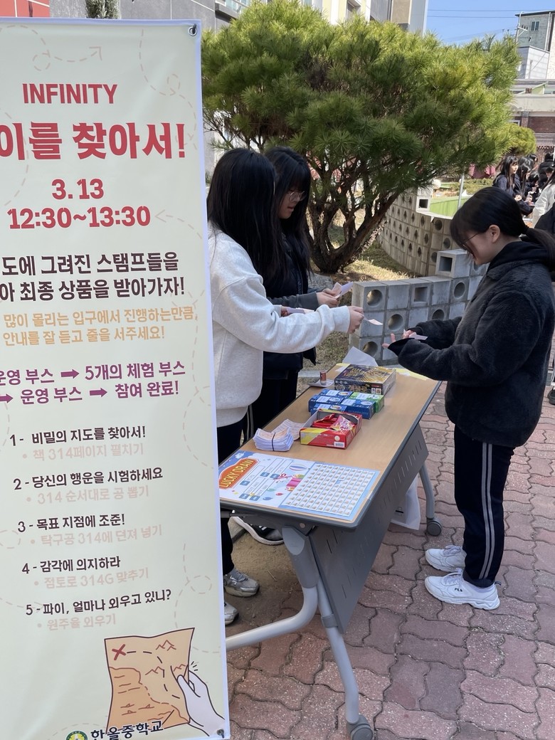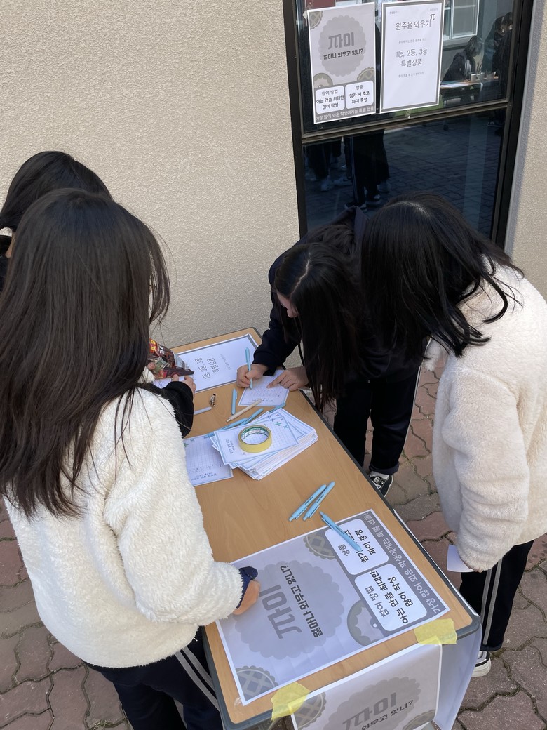 이번 행사는 수학동아리 ‘인피니티(INFINITY)’가 기획을 주도했다. 학생들은 단순히 공식으로만 접하던 원주율을 ‘보물찾기’라는 흥미로운 테마에 접목해 5가지 미션 부스를 운영했다.