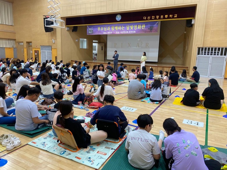 영화 시작에 앞서 학부모회 고민정 회장은“ 다산한강초 학생들이 저녁시간에 학교에서 가족끼리 영화를 보면서 소중한 추억을 쌓고 즐거운 관람하시고 영화가 전해주는 가족애의 메시지도 새겨보면 좋겠다”고 하였다.